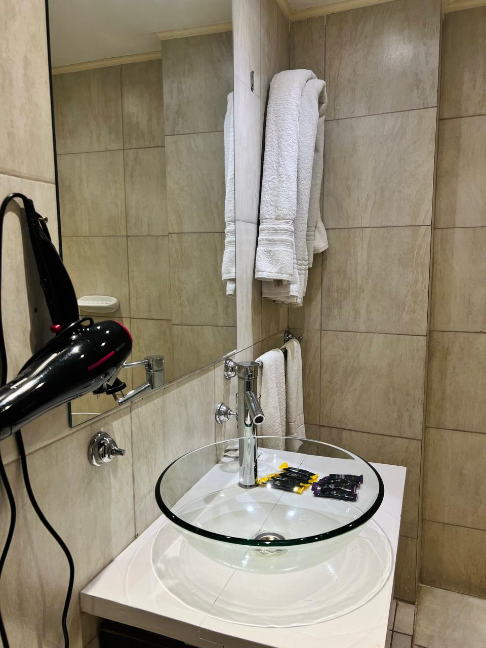 Las habitaciones están equipadas con TV de pantalla plana, aire acondicionado y baño privado con secador de pelo.